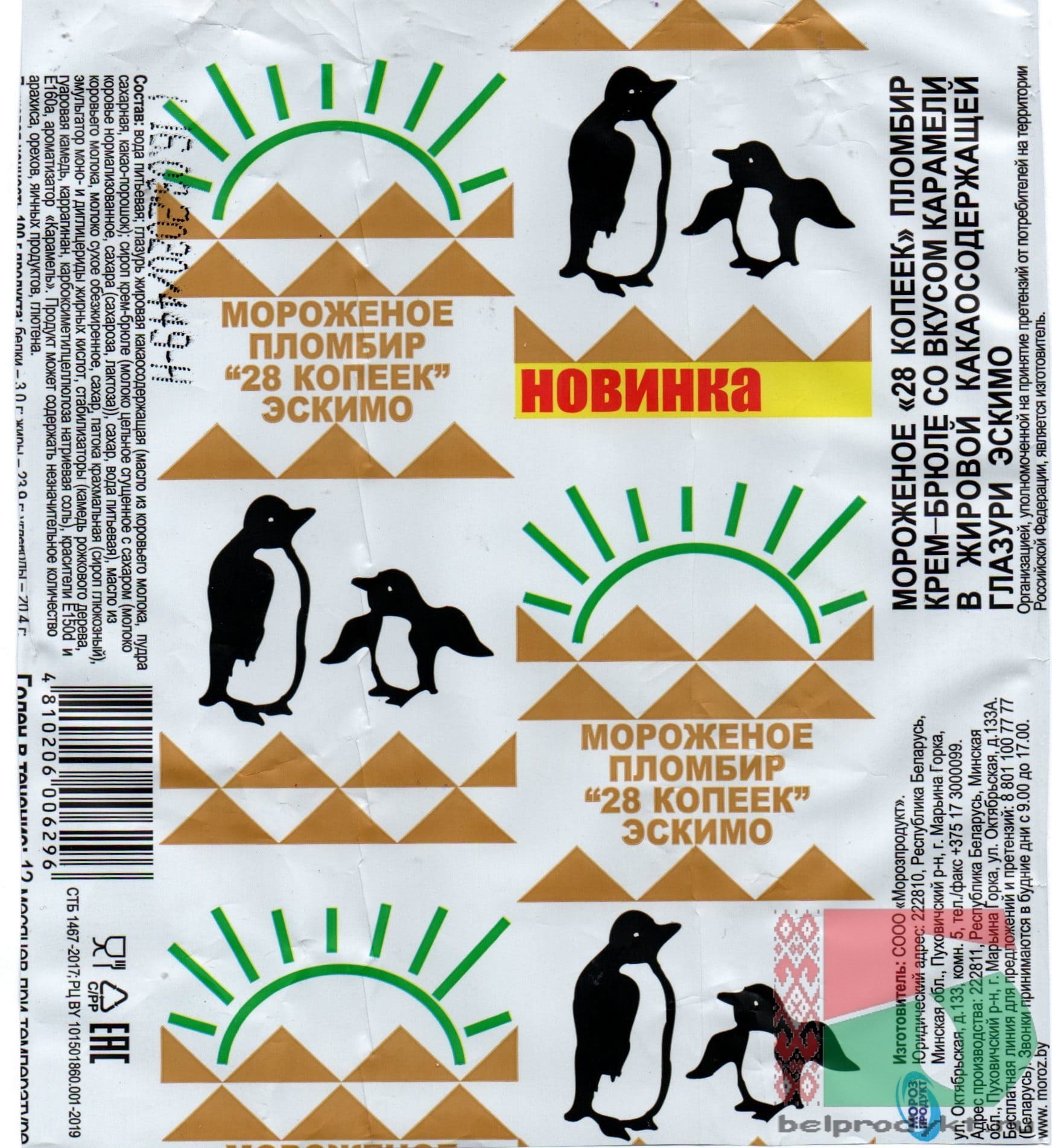Производитель: СООО "Морозпродукт", Республика Беларусь, Минская обл., Пуховичский р-н, г. Марьина Горка, ул. Октябрьская, д.133А.