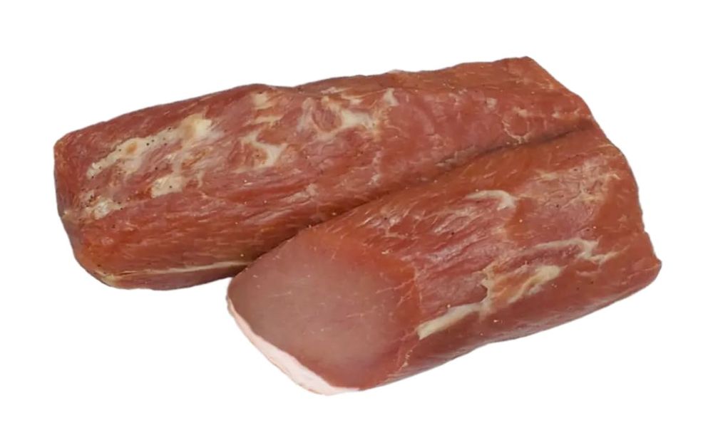 Состав: пояснично-поясничная мышца свиная, соль йодированная пищевая, комплексная пищевая добавка для мясной продукции, пряности.