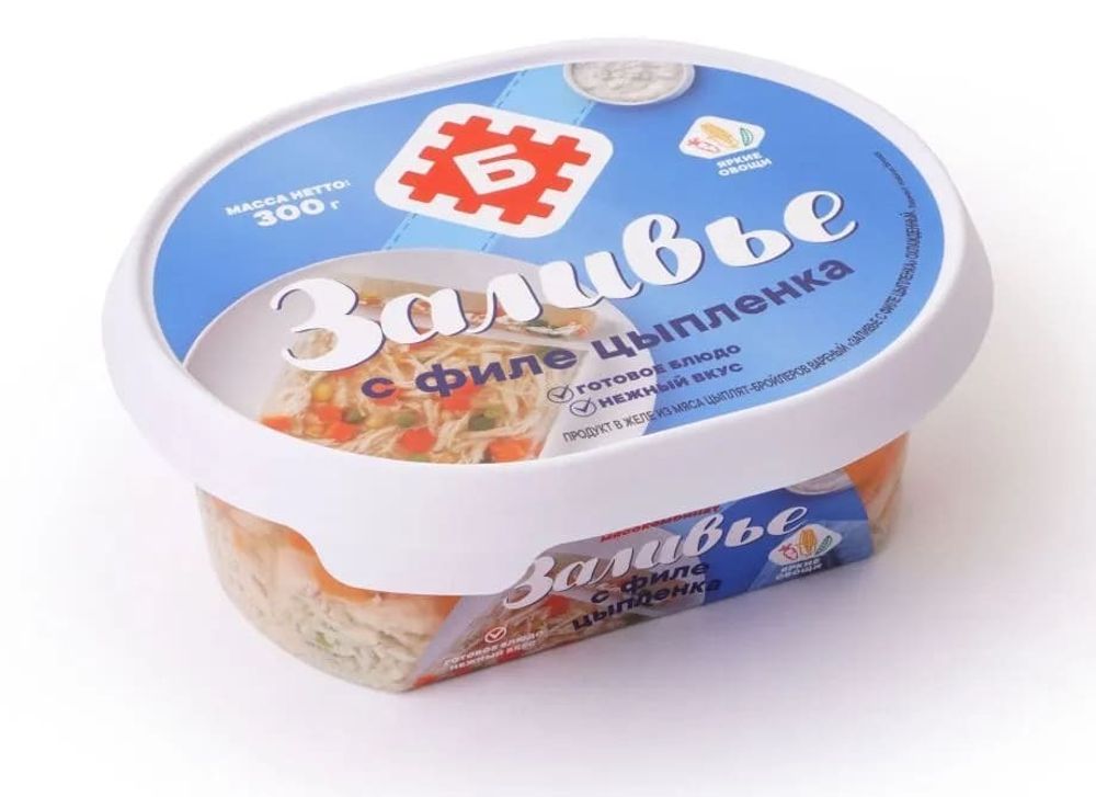 Продукт в желе из мяса цыплят-бройлеров вареный "Заливье с филе цыпленка" охлажденный