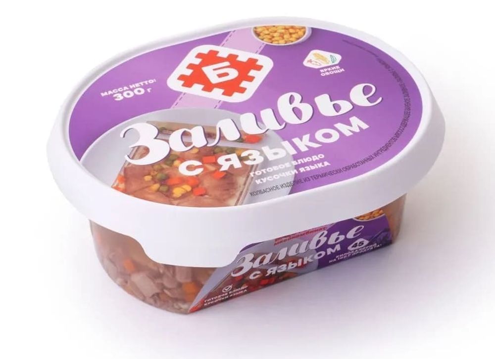 Продукт в желе из мяса цыплят-бройлеров вареный "Заливье с языком" охлажденный