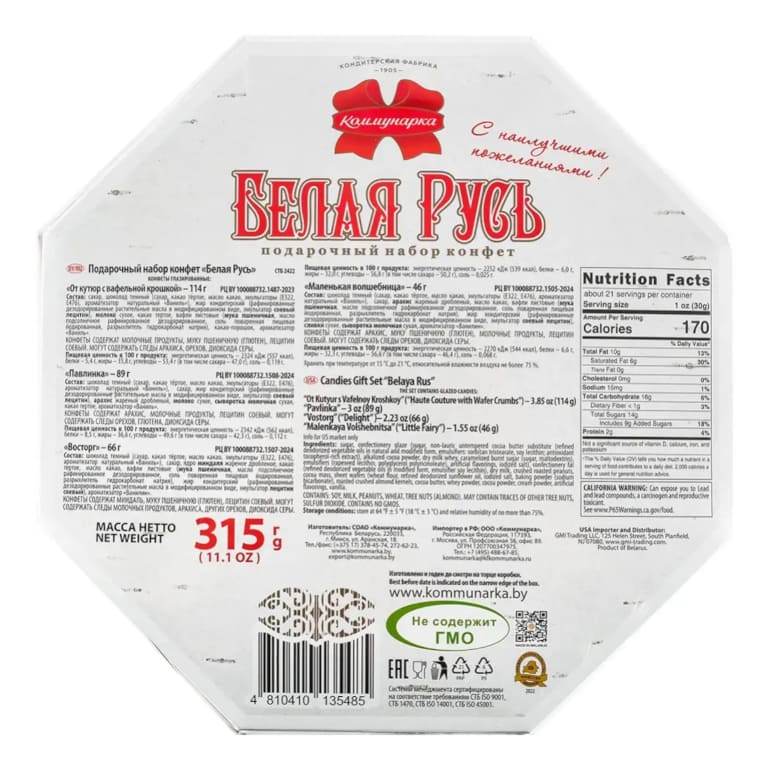Производитель: СОАО "Коммунарка", Республика Беларусь, г. Минск, ул. Аранская, 18.