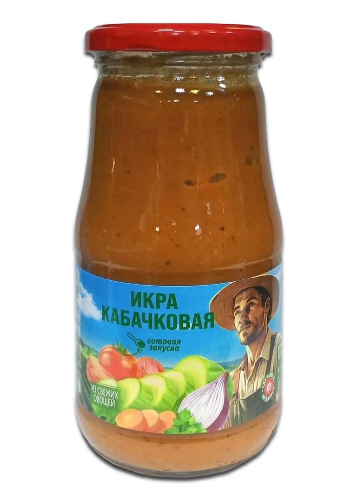 Состав: кабачки свежие, лук репчатый, паста томатная, морковь, масло подсолнечное, сахар, соль поваренная пищевая йодированная, зелень, перец черный, перец душистый.