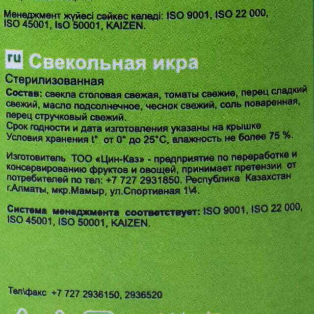 Состав: свекла столовая свежая, томаты свежие, перец сладкий свежий, масло подсолнечное, чеснок свежий, соль поваренная, перец стручковый свежий.
