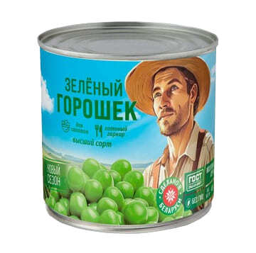 Состав: горох овощной, вода питьевая, соль, сахар.