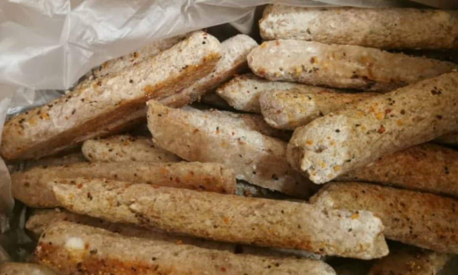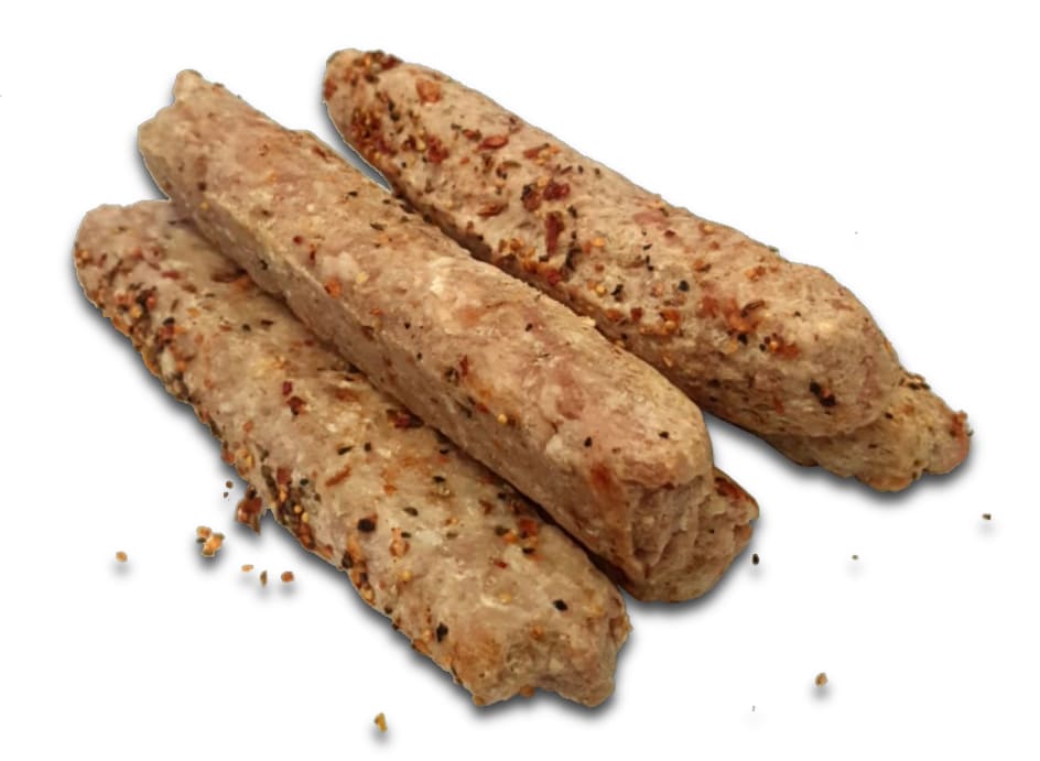 Состав: говядина, шпик свиной, мясо птицы механической обвалки, растительный белок, вода, лук репчатый свежий, пшеничная клетчатка, соль, перец черный