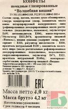 Состав: сахар, патока, молоко сухое обезжиренное, глазурь кондитерская, вишня сушеная, заменитель молочного жира, консервант сорбат калия, ароматизатор пищевой "Вишня".