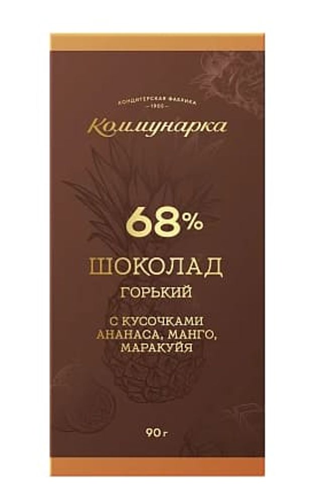 Шоколад "Коммунарка" Горький с фруктовыми кусочками ананас-манго-маракуйя 68% какао