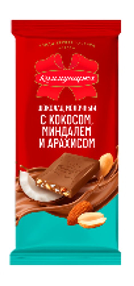 Состав: сахар, сливки сухие, масло какао, какао тертое. кокосовая стружка,молоко сухое, арахис жареный дробленый, ядро миндаля жареное дробленое, эмульгаторы (Е322, Е476), соль поваренная пищевая йодированная, роматизатор натуральный "Ваниль".