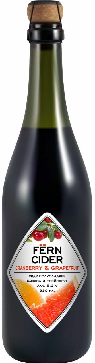 Сидр "ФЕРН" фруктовый ароматизированный газированный полусладкий Яблочный с клюквой и грейпфрутом
