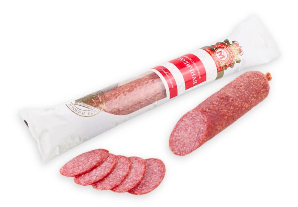 Колбасное изделие сырокопченое мясное первого сорта "Колбаса оригинальная Столичная"