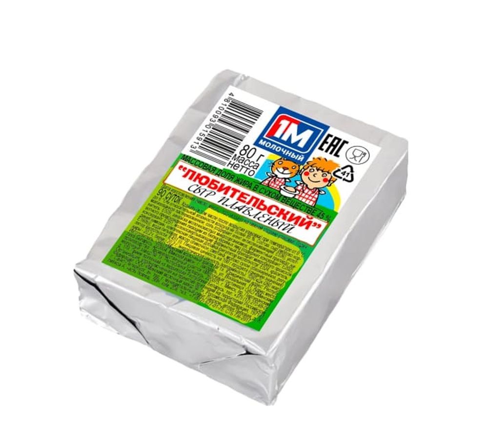 Состав: сыр (молоко нормализованное пастеризованное, соль (содержит агент антислеживающий: Е536), уплотнитель: Е509, закваска молочнокислых микроорганизмов, ферментный препарат животного происхождения лизоцим из белка куриных яиц (содержит консервант: Е202), консервант: Е251, молокосвертывающий ферментный препарат микробного происхождения химозин, комплексная пищевая добавка (регулятор кислотности: Е524, краситель: Е160b)), вода питьевая, масло сливочное, сметана, молоко сухое обезжиренное, регулятор кислотности: Е451(i)