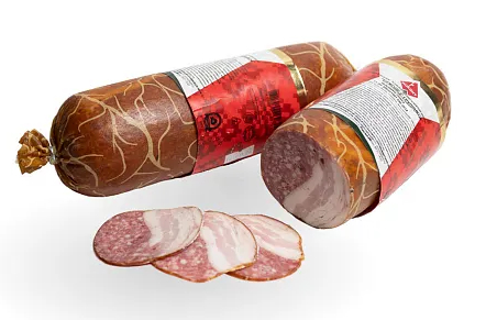 Изделие колбасное колбаса варено-копченая мясная "Бужоле с грудинкой" высшего сорта