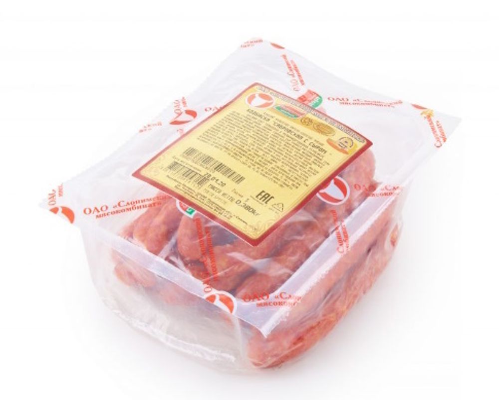Колбаска "Сябровская с сыром" варено-копченая высшего сорта